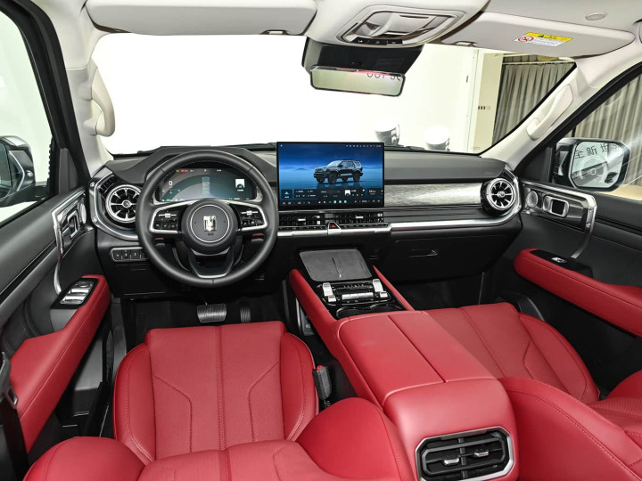 进入车内,新车对称的厚重中控台配备12.3英寸液晶仪表+16.2英寸中控屏+流媒体后视镜构成科技四屏,Coffee OS系统支持三指飞屏操作。中控台保留实体按键,沿用了在售车型的三辐式方向盘,但改用了怀挡式换挡机构,车辆副仪表台布局也发生变化,木纹饰板与Nappa真皮座椅形成材质碰撞。而且红黑双拼的配色更是彰显了新车的运动感。空间方面,新车的后排座椅放倒后可形成纯平空间,后备箱容积从常规的566L扩展至1800L。门板储物格可容纳1.5L水瓶,但中央扶手箱深度仅15cm。